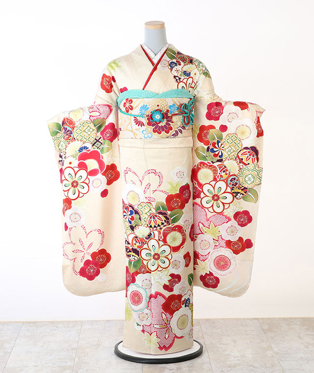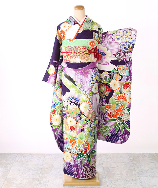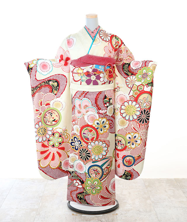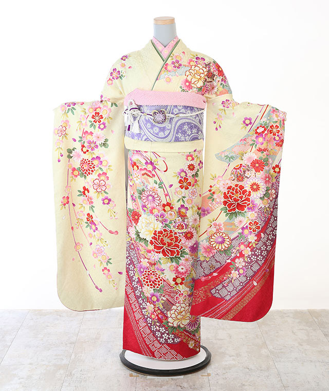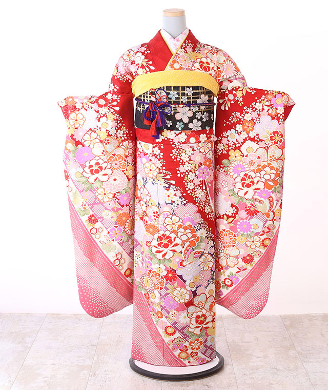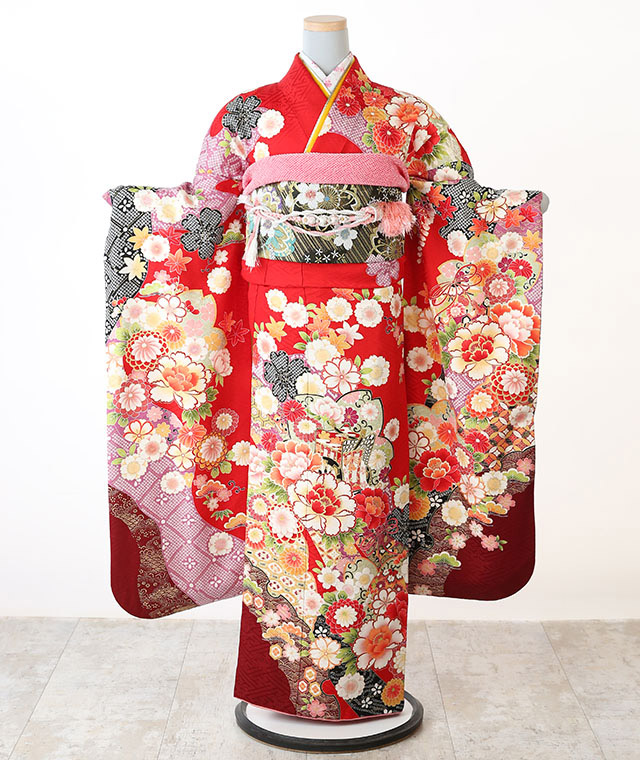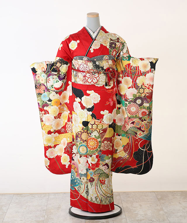 - 振袖、帯、長襦袢、帯揚げ、帯締め、重ね衿、ショール、草履、バッグ