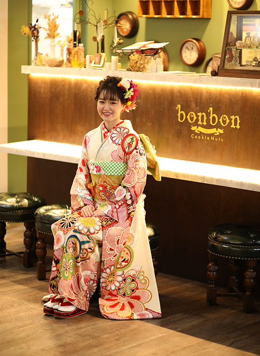 クッキーナッツとボンボンの成人式記念撮影はどこにもないアンティークでラグジュアリーなスタジオで、こだわり抜いた柔らかな光や印象的な影によりドラマティックでエモーショナルなプレミアムフォトで一番輝かしい今だけの一瞬を一生の写真として美しく残します。